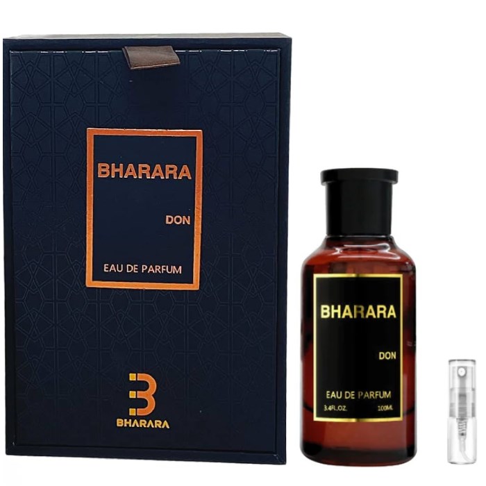 Homepage › Parfums › BRAND › Bharara Beauty Notice: All products are 100% original perfumes in tester packaging. Due to regulations, brand names and logos are not displayed in the images Bharara BeautySe alle parfume tester Bharara Don - Eau de Parfum - Perfume sample - 2 ml Product number: TPS-4246- 2ML 2000 Choose size Choose variant 7,95 EUR Including VAT plus delivery costs Available - In 5-10 working days to you Amount Add to Cart From 5€ shipping cost Guaranteed genuine Purchase by invoice (Klarna) free sample Placeholder Placeholder Placeholder Placeholder Placeholder Placeholder Placeholder Product Recommendations Product descriptionProduct ingredients Bharara Don - Eau de Parfum - Perfume Sample INCI List ALCOHOL DENAT., PARFUM (FRAGRANCE), AQUA (WATER), LINALOOL, BENZYL SALICYLATE. Manufacturer contact Edge USA Inc. Lodi, NJ 07644 USA