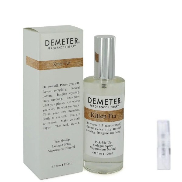 Homepage › Parfums › BRAND › Demeter Notice: All products are 100% original perfumes in tester packaging. Due to regulations, brand names and logos are not displayed in the images DemeterSe alle parfume tester Demeter Kitten Fur - Eau De Cologne - Perfume sample - 2 ml Product number: TPS-2235- 2ML 1983 Choose size Choose variant 5,95 EUR Including VAT plus delivery costs Available - In 5-10 working days to you Amount Add to Cart From 5€ shipping cost Guaranteed genuine Purchase by invoice (Klarna) free sample Placeholder Placeholder Placeholder Placeholder Placeholder Placeholder Placeholder Product Recommendations Product descriptionProduct ingredients Demeter Kitten Fur - Eau De Cologne - Perfume Sample - 2 ml INCI List ALCOHOL DENAT., CAPRYLIC/CAPRIC TRIGLYCERIDE, FRAGRANCE (PARFUM, FRAGANCIA), WATER (EAU, AQUA) Manufacturer Contact Demeter Fragrance Library 12 N Gate Rd Great Neck, NY 11023 USA