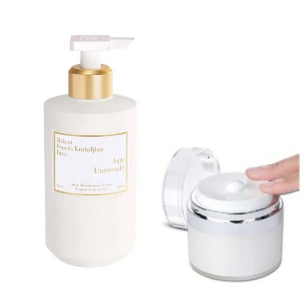 Homepage › Parfums › BRAND › Maison Francis Kurkdjian Notice: All products are 100% original perfumes in tester packaging. Due to regulations, brand names and logos are not displayed in the images Maison Francis Kurkdjian Maison Francis Kurkdijan Aqua Universalis - Airless Dispenser - Bodylotion - 30 ml Product number: CPS-20 -10 22,95 EUR Including VAT plus delivery costs Out of stock - check back later OUT OF STOCK Send an email when the item is back in stock Amount Add to Cart TPS-1644- 10ML-Case Aqua Universalis Cologne Forte by Maison Francis Kurkdjian - Eau de Parfum - Travel Size - 10 ml 41,00 EUR TPS-1644- 2ml Aqua Universalis Cologne Forte by Maison Francis Kurkdjian - Eau de Parfum - Perfume sample - 2 ml 14,95 EUR TPS-1644- 5ML Aqua Universalis Cologne Forte by Maison Francis Kurkdjian - Eau de Parfum - Perfume sample - 5 ml 29,95 EUR From 5€ shipping cost Guaranteed genuine Purchase by invoice (Klarna) free sample Placeholder Placeholder Placeholder Placeholder Placeholder Placeholder Placeholder Product Recommendations Product descriptionProduct ingredients Maison Francis Kurkdijan Aqua Universalis - Airless Dispenser - Bodylotion - 30 ml Ingredient information for this perfume is currently unavailable. We're working to provide it shortly.