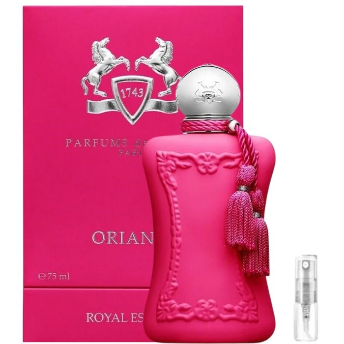 Oriana by Parfums de Marly is a floral fruity gourmand fragrance for women. It was launched in 2021 and created by Nathalie Lorson and Hamid Merati-Kashani. Top notes: mandarin, bergamot, and grapefruit; middle notes: orange blossom, raspberry, and blackcurrant; base notes: whipped cream, marshmallow, musk, and ambrette.